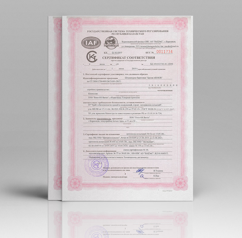LLP "Petro Oil Barite" Barite Plaster "Armor" TM